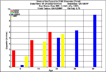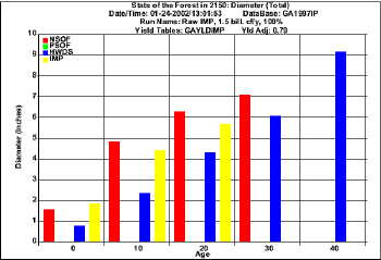 Projection  for harvesting 1.5  bil. cf/y using raw FIA data (Diameter)