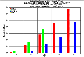 Projection  for harvesting 1.8  bil. cf/y using raw FIA data (Density)