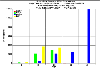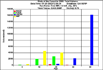 Projection for harvesting 1.8 bil. cf/y using raw FIA data (Volume)