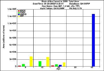Projection  for harvesting 1.2  bil. cf/y using raw FIA data (Total Area)