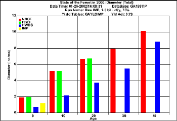 Projection for harvesting 1.8 bil. cf/y using raw FIA data (Diameter)